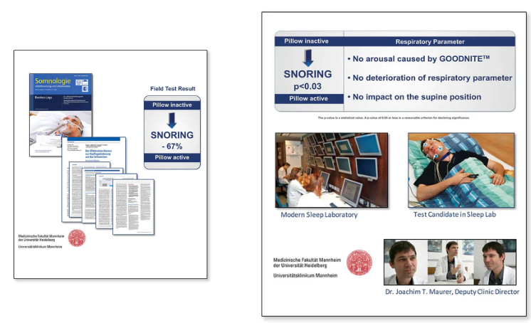 Clinical trials at the University ENT Clinic Mannheim in Germany have shown that using the Nitetronic Smart Anti-Snore Pillow can reduce or eliminate snoring by approximately 67%.