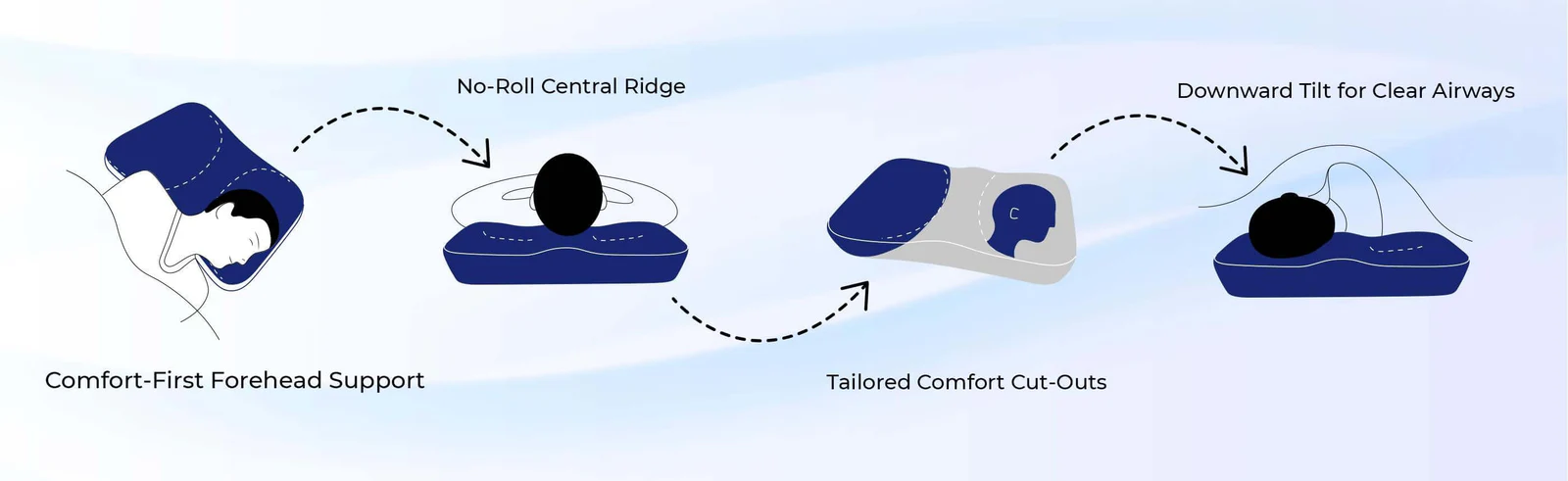 Side-Sleeping Anti-snoring Pillow, with unique ergonomic central spine design, can keep the head naturally tilted during sleep, without the need to intentionally sleep on the side or other people to promote the turn over, effectively intervene in the supine sleep for side sleeping position, smooth oropharyngeal airway, reduce airway resistance, relieve insufficient ventilation and reduce snoring.